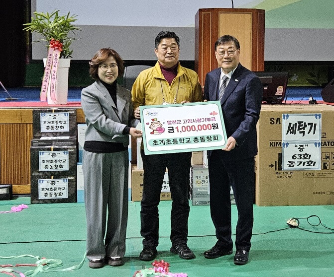 5일 초계초등학교 운동장에서 개최된 제 26회 총동창회 개회식 현장에서 이선건 총동창회장은 고향사랑 기부금 100만 원과 산불피해를 입은 산청군 이재민을 위한 성금 50만 원을 기탁하였다.