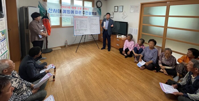 이번 설명회는 마을 주민을 대상으로 산사태 예측정보 발령에 따른 비상 연락망 구축과 비상사태 발령 시 단계별 주민 행동 요령, 대피소 안내, 비상 연락처 공유 등 장마철 비상사태 대응체계 세부 내용을 안내함으로써 인명피해 예방에 중점을 뒀다.