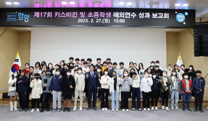 군청 대회의실에서 열린 이날 보고회에는 지난 1월 19일부터 28일까지 10일간의 일정으로 진행된 제17회 키스비전 프로그램에 참여한 15명의 학생과 학부모들과 지난 2월 3일부터 22일까지 3주간의 일정으로 진행된 2022 함양군 초중학생 해외연수 프로그램에 참여한 44명의 학생들과 학부모들이 참여했다.