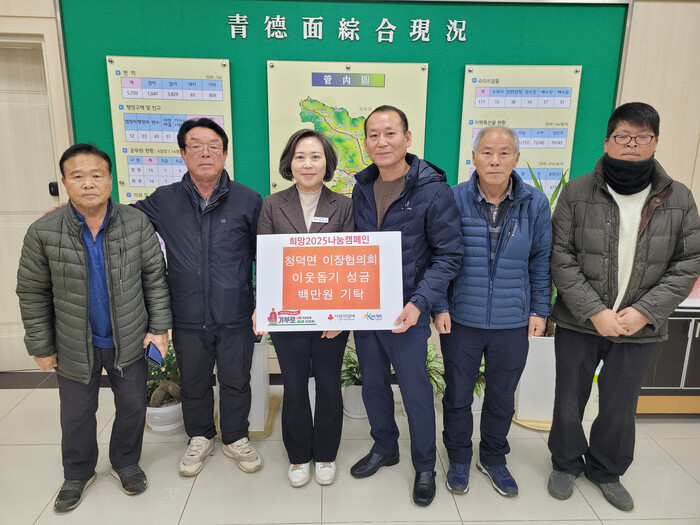 이은숙 청덕면장은 “매년 이웃돕기 성금을 기탁해 주시는 이장님들께 깊이 감사드리며, 앞으로도 주변 이웃들을 따뜻하게 돌보는 청덕면을 만들어가겠다”고 밝혔다.