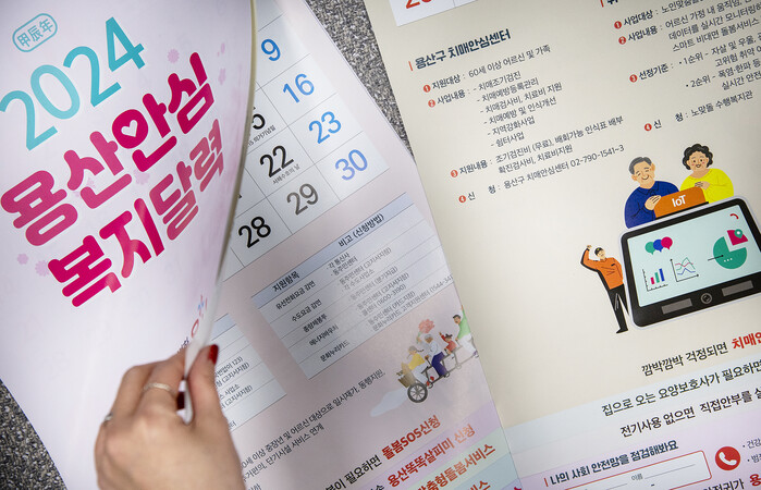 [시민일보 = 홍덕표 기자] 서울 용산구(구청장 박희영)가 ‘2024년 용산안심복지달력’ 5000부를 제작했다. 동 주민센터에서 지난 19일부터 사회보장급여 대상자에 순차적으로 배부하고 있다.