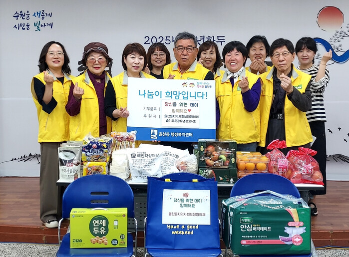 경기 수원시 장안구 율천동 지역사회보장협의체는 22일, 저소득층 홀몸 어르신들을 위한 방문복지서비스 ‘당신을 위한 데이’를 진행했다. ‘당신을 위한 데이’는 분기마다 복지사각지대에 놓인 취약계층 5가구를 방문해 율천동 주민들의 후원으로 마련된 기금으로 식료품과 5만원 상당의 희망 물품을 전달하며 안부도 확인하는 사업이다. 사진은 참여자들이 기념촬영을 하고 있는 모습. (사진=장안구청 제공)