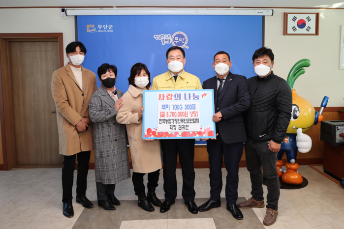 | ▲ 한국농업경영인 무안군연합회, 불우이웃 위한 쌀 300포 기탁(출처=무안군청) |
