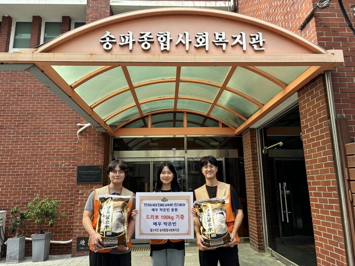 [시민일보 = 이대우 기자] 월드비전 송파종합사회복지관(관장 전재현)은 배우 박은빈 팬모임 ‘디시인사이드 박은빈 갤러리’에서 쌀 100kg를 기부했다고 밝혔다. 배우 박은빈의 두 번째 팬 파티를 기념하기 위해 기부된 쌀은 송파구 내 취약계층 어르신 가정을 돕기 전달될 예정이다.