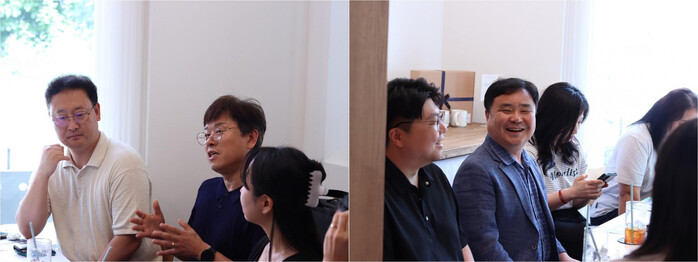 | ▲ [좌] (왼쪽) 청년문간 이문수 가브리엘 신부, (오른쪽) 레인코리아 송인창 소장,[우] (왼쪽) 청년38국수 남지훈 CMO, (오른쪽) HBS 이구승 CEO |