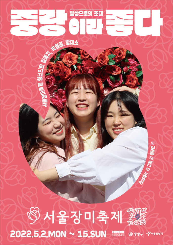 중화체육공원, 면목체육공원, 중랑장미공원 등에서 ‘일상으로의 초대, 중랑이라 좋다!’라는 주제로 열리는 올해 서울장미축제는 구민들에게 위로를 전하고 일상 회복을 응원하는 의미가 담겼다.