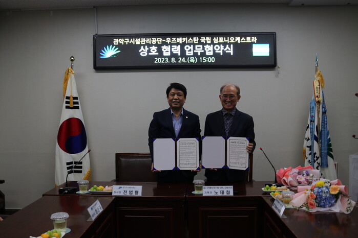 [시민일보 = 여영준 기자] 서울 관악구시설관리공단(이하 공단)이 지난 24일 우즈베키스탄 국립 심포니 오케스트라와 지역사회 상생발전 및 문화예술사업 활성화를 위한 업무협약을 체결했다.