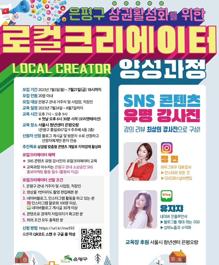 [시민일보 = 이대우 기자] 서울 은평구(구청장 김미경)는 지역 가게와 소상공인을 홍보하는 ‘로컬 크리에이터 양성과정’ 참여자를 오는 21일까지 모집한다.