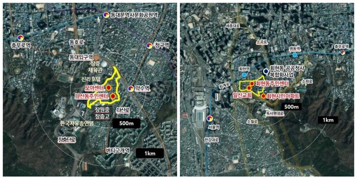 후보지로 선정된 지역은 ‘회현동1가 164번지 일대(회현동, 5만8000㎡)’와 ‘신당동 432-24 일대(다산동, 7만8200㎡)’로 구역 내 노후·불량건축물 비율은 각각 86%와 88%에 달한다.
