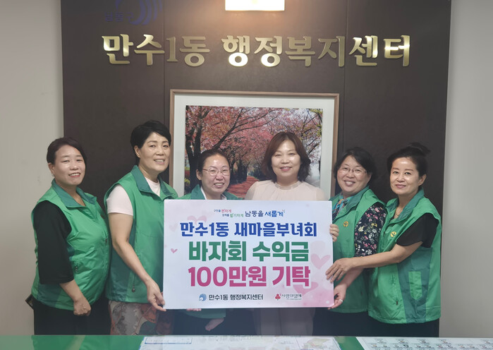 [인천=문찬식 기자] 인천 남동구 만수1동 행정복지센터는 새마을부녀회(회장 윤나경)로부터 이웃사랑 후원금 100만 원을 전달받았다고 밝혔다.