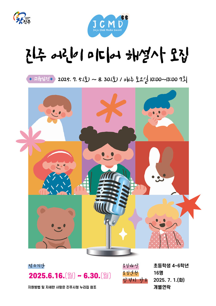 진주시는 6월 16일부터 30일까지 관내 초등학교 4~6학년을 대상으로 진주의 주요 문화시설을 소개하는‘진주 어린이 미디어 해설사’ 프로그램 참가자 16명을 모집한다.