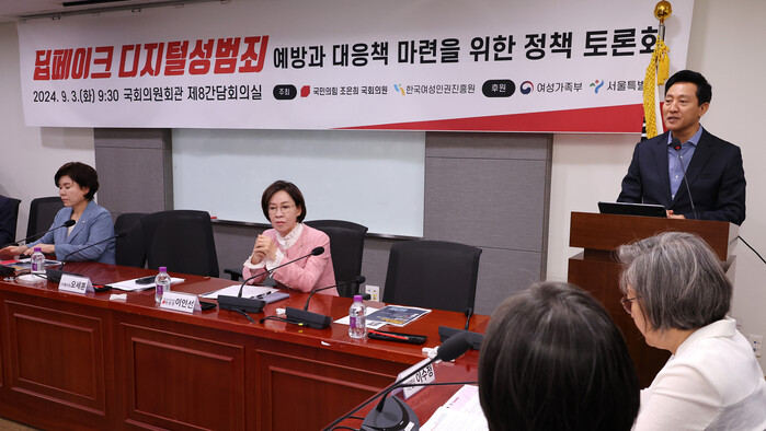 오세훈 서울시장은 "딥페이크 영상은 누구나 피해자가 될 수 있고 또 정확한 피해 규모를 추산하는 것조차 어렵다"며 "서울시는 최대한 서둘러 단 한 명의 피해자라도 더 도울 수 있도록 하고 피해자가 무거운 짐을 홀로 감당하지 않도록 함께 하겠다"고 밝혔다.