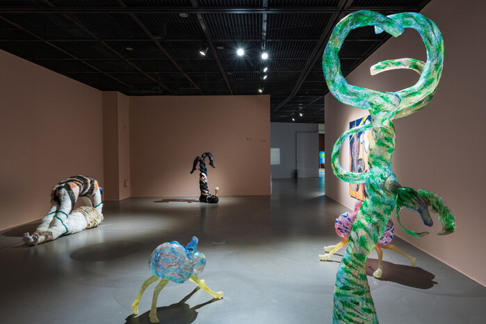 이어서 강건 작가는 인물이나 동물, 곤충을 패턴의 일부로 결합해 부드러움과 날카로움, 약함과 단단함 사이에서 발생하는 불안과 긴장을 표현한다. 김성수 작가는 창작 공간을 지속해서 이동해야 하는 조각가의 일상을 가상의 등장인물 ‘랫캣(Rat-Cat)’의 서사에 투영해 소유할 수 없는 공간에 대한 욕망과 창작자의 고립된 심상을 조명한다.