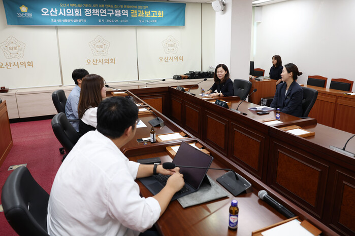 | ▲ 오산시의회 ‘오산시민 생활정책 실천연구회’가 최종보고회를 열고 회의를 진행하고 있다. (사진=오산시의회 제공) |