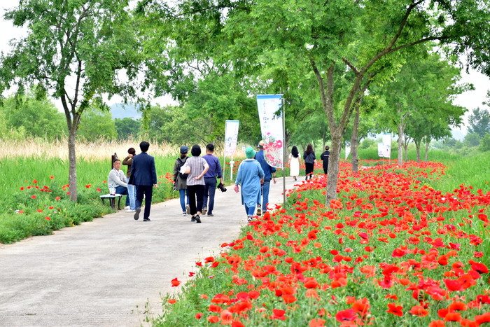 초동면 연가길은 국토부가 선정한 아름다운 우리강 탐방로 100선에도 선정된 낙동강변 산책로다. 연가길에 수놓은 붉은색, 분홍색 꽃양귀비의 아름다운 색감은 관광객의 눈과 마음을 즐겁게 하고, 추억을 담아 가기에 충분하다.