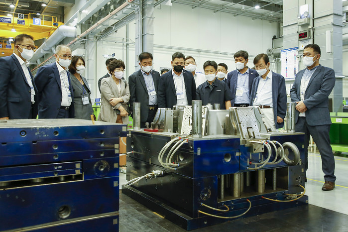| ▲ 지난 2일 삼성전자 광주캠퍼스에서 열린 '2022년 스마트공장 킥오프 행사'에 참석한 중소기업 대표와 관계자들이 정밀금형센터를 둘러보는 모습. (사진제공=삼성전자) |