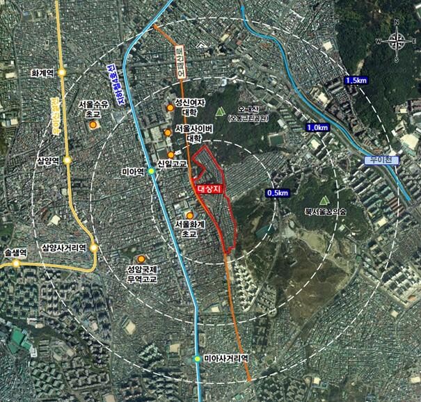 이번에 추진되는 ‘미아동 258번지 일대 주택재개발 정비계획 수립 및 정비구역 지정 용역’은 재개발사업 2단계 절차인 정비계획(안) 수립과 3단계 절차인 정비구역 지정을 위한 것이다.