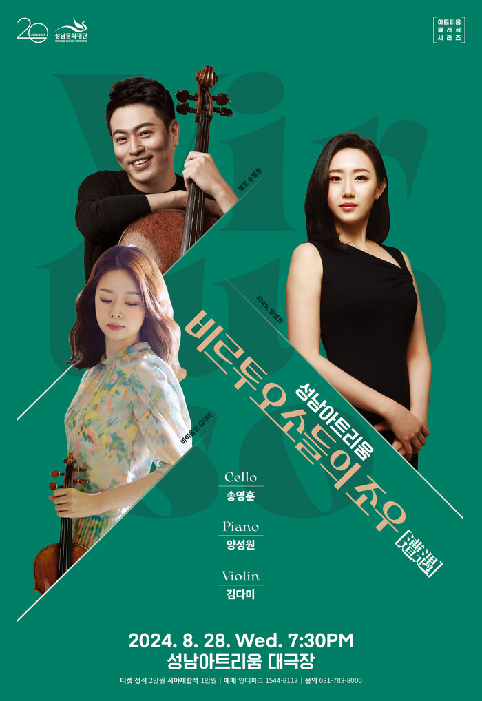 이번 공연에는 완벽한 기교와 따뜻한 감성을 두루 겸비한 첼리스트 송영훈과 섬세하고 정교한 연주, 반짝이는 기획력으로 국내외 관객들에게 사랑을 받는 피아니스트 양성원, 다양한 실내악 연주 경험으로 앙상블에 뛰어난 연주자로 정평이 난 바이올리니스트 김다미가 함께한다.