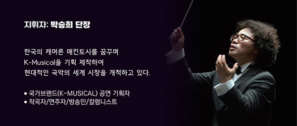 단장 겸 상임지휘자인 박승희 지휘자는 현재 공주시 충남도립국악단 예술감독과 대한민국 국악지휘자협회 수석부회장을 재임 중으로 국립국악원 정악 연주 단원과 창작악단 수석, 전남도립국악단 예술총감독, 전라남도 문화재 전문위원 등을 역임했으며 지휘자로서, 또 예술가로서 화려한 면모를 자랑하며 활발한 활동을 이어나가고 있다.