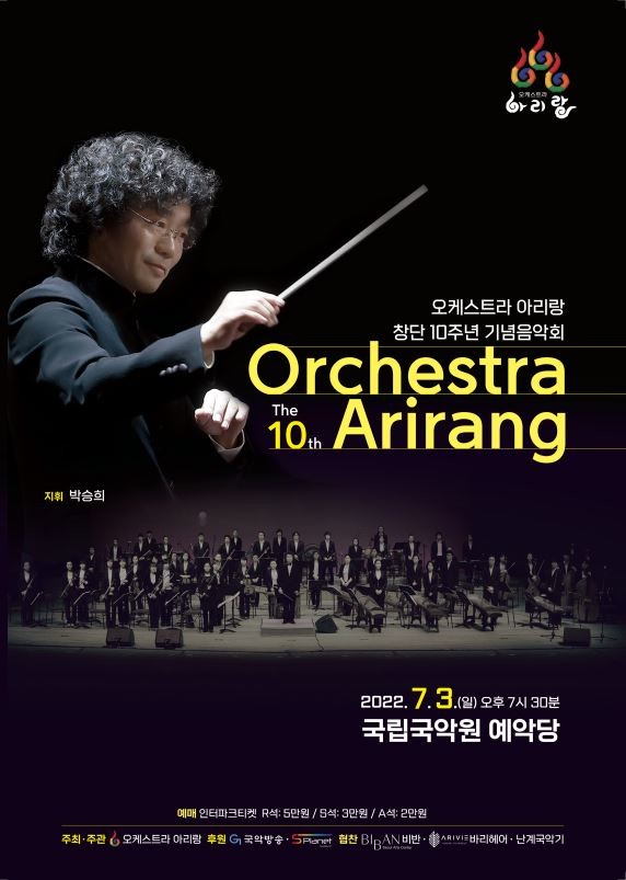이번 기념음악회는 오케스트라 아리랑이 주최 및 주관, 국악방송, 에스플래닛이 후원, 비반, 바리 헤어, 난계국악기가 협찬, 창작과공감 윤종성 작가가 디자인기획을, 진행은 기획사 위뜰이 맡았다. 인터파크를 통해 공연상세정보 확인과 예매가 가능하다.(R석: 5만원, S석: 3만원, A석: 2만원)