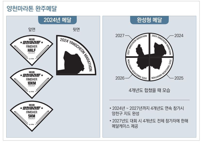구는 2027년 열릴 제16회 양천마라톤대회에서 4개 메달을 모두 획득한 완주자에게 메달케이스를 증정할 계획이다.