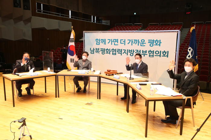 경기 양평군은 16일 한반도 평화와 지방정부 차원의 남북협력사업 활성화를 위한 ‘남북평화협력 지방정부협의회 제2차 정기총회’에 참석했다. 이날 회의에서는 2022년 사업계획 및 세입·세출 예산안과 협의회 규정 등을 결정했다. 사진은 정기총회가 진행되고 있는 모습. (사진제공=양평군청)