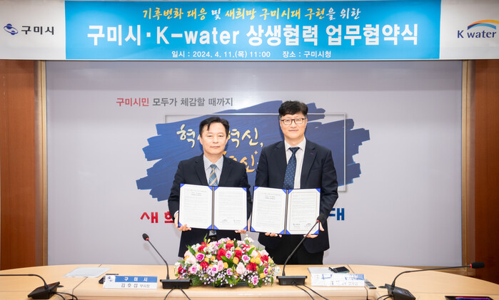 [구미=박병상 기자] 경북 구미시는 11일 시청에서 한국수자원공사와 ‘기후변화 극복과 새 희망 구미 시대 구현을 위한 상생협력 업무협약’을 체결했다.