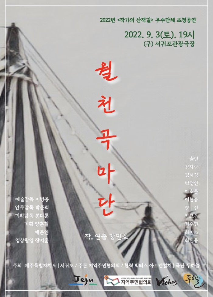 이번 연극은 서귀포 지역주민협의회의 ‘2022년 <작가의 산책길> 우수단체 초청공연’의 초청을 받아 올리게 되는 작품으로, 극단 ‘두 하늘’과 빅터스아트앤컬쳐의 협력으로 제작된다.