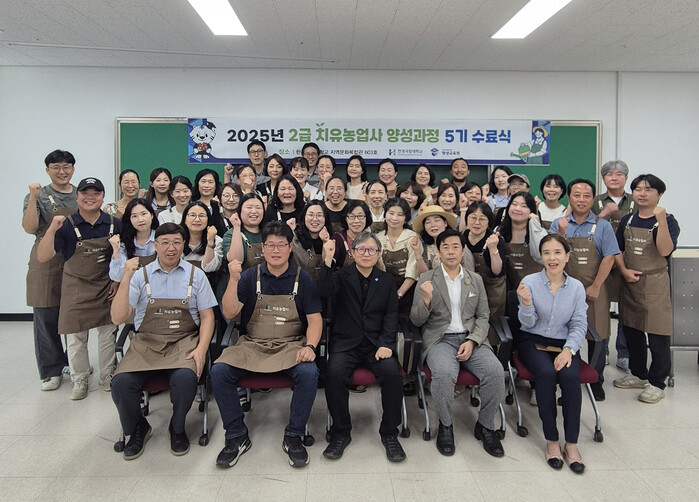 이번 교육은 지난 4월 4일부터 7월 25일까지 총 142시간(이론 94시간, 실습 48시간) 동안 진행됐으며, 중간평가와 실습보고서를 모두 마친 교육생 40명 전원이 수료했다. 수료자는 2025년 시행 예정인 ‘치유농업사 2급’ 국가자격시험에 응시할 수 있는 기본 자격을 얻게 된다.