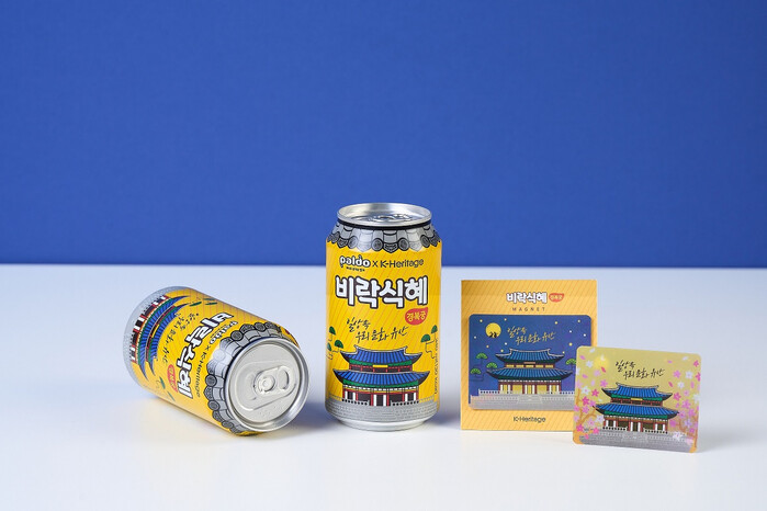 이 제품은 비락식혜 용기에 경복궁 이미지를 활용한 디자인을 담았다. 국가유산진흥원과 협업한 이 제품은 온오프라인 전 채널에서 판매된다.