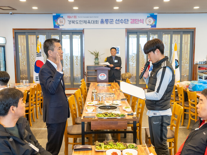 출정식은 울릉군체육회의 선수단 구성보고를 시작으로 선수단기 전달, 선수 단대표 선서, 울릉군체육회장의 각급 기관단체장의 격려사 등으로 진행됐다.