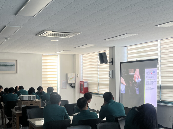 이 날 훈련 전에는 대피경로를 점검하고, 대피유도요원을 배치하여 훈련 중 발생할 수 있는 안전관리에 주력하였다.