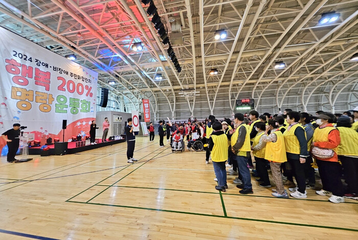 [시민일보 = 이대우 기자] 서대문구(구청장 이성헌)는 최근 명지전문대학 예체능관 3층 실내체육관에서 ‘2024 서대문 장애·비장애 주민화합잔치 - 행복 200% 명랑운동회’가 열렸다고 7일 밝혔다.