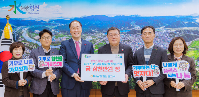 도기문 합천군지부장은 “이번 겨울에도 지역사회의 어려운 이웃들을 위한 나눔 활동을 이어갈 수 있어 기쁘다”며 “농협은행은 늘 고객과 지역사회의 든든한 동반자가 될 수 있도록 최선을 다하겠다”고 말했다.