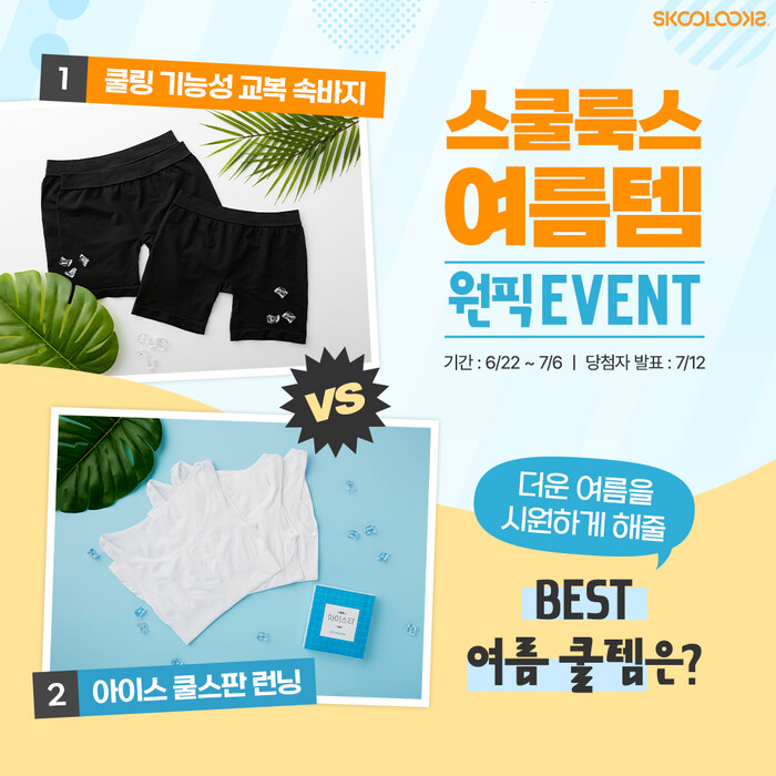 스쿨룩스 전략실 김율 실장은 “여름철 공부에 지치지 않고 열심히 하는 학생들을 위해 여름템 원픽 이벤트를 기획했다”며 “냉감과 흡습속건 기능이 뛰어난 스쿨룩스의 여름 아이템과 함께 역대급 여름을 이겨낼 수 있길 바란다”고 말했다.