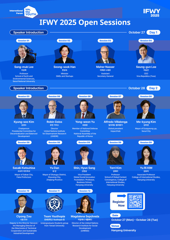 포럼의 마지막 날인 오는 29일에는 은평구 진관사에서 폐막식이 열린다. 이 자리에서 전 세계 청년 대표단은 3일간의 논의를 바탕으로 ‘이프위(IFWY) 2025 은평선언문(Eunpyeong Declaration)‘을 발표한다.
