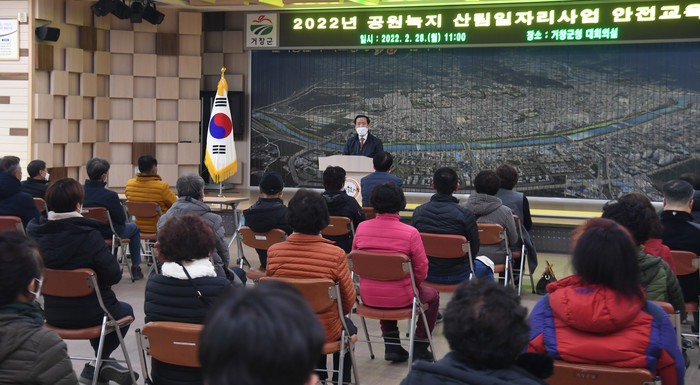 거창군은 일자리창출과 안정적인 임업노동력을 확보하기 위해 조경관리단, 산림경관관리단 등 9개 분야의 참여자 49명을 대상으로 맞춤형 안전교육을 시행했다.