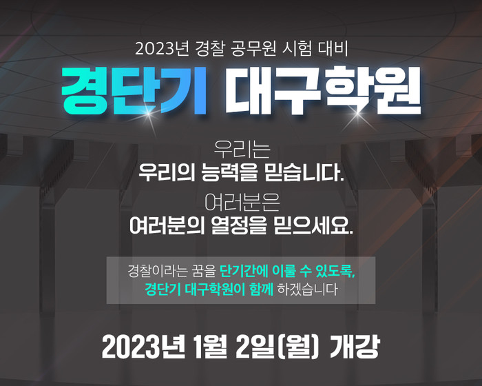 경단기 대구학원은 2023년 1월2일 이동진 교수의 헌법 강의를 시작으로 개강하며, 자세한 내용은 경단기 대구학원 홈페이지에서 확인할 수 있다.