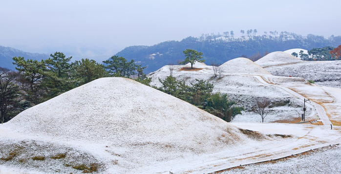 세계유산인 말이산고분군은 사람과 자연이 조화롭게 공존하며 사계절 모두 아름답다. 봄이면 말이산 7호분과 8호분 사이의 왕벚나무 아래서 포즈를 취하는 커플들, 여름이면 초록으로 물든 고분군에는 어린이집에서 소풍 나온 아이들이 뛰놀고, 가을에는 역사문화축제인 ‘아라가야문화제’가 펼쳐져 밤에도 아름답게 불빛을 밝히며 사람들이 모여든다. 그리고 다시 겨울. 말이산고분군 위로 소복히 쌓인 눈은 마음속에 새로운 희망을 품은 우리의 마음 같다. 1500여 년의 역사를 간직한 고분군의 능선은 걷는 이들에게 마음의 안식을 준다. 경사도 완만해 아이부터 어르신까지 걷기에 좋다. 고분을 오르면 보이는 완만한 산의 풍경까지 이 시간을 온전히 느껴보자.