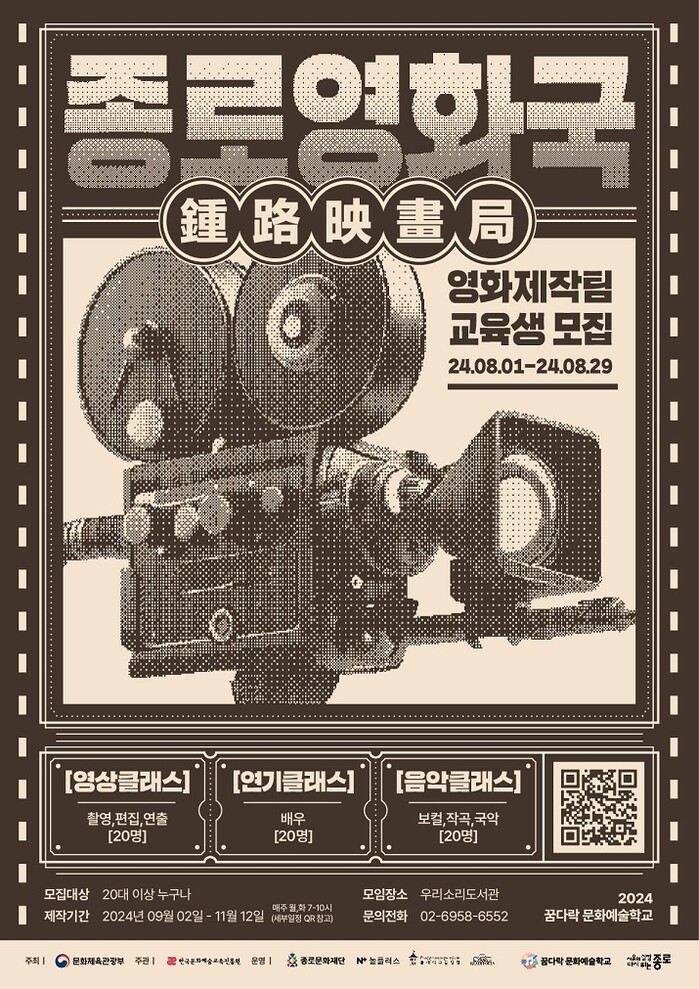 현재 촬영과 편집, 연출을 맡을 ‘영상클래스’, 배우로 활약할 ‘연기클래스’, 보컬·작곡·국악 역량을 펼칠 ‘음악클래스’로 구분해 클래스별 20명을 모집 중이다. 비용은 전액 무료다.