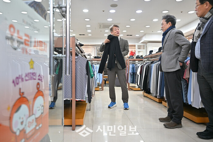 | ▲ 김이강 광주광역시 서구청장(왼 쪽)이 지난 19일 세정아울렛을 방문해 현장 운영 상황을 점검하고 있다. / 서구청 제공 |