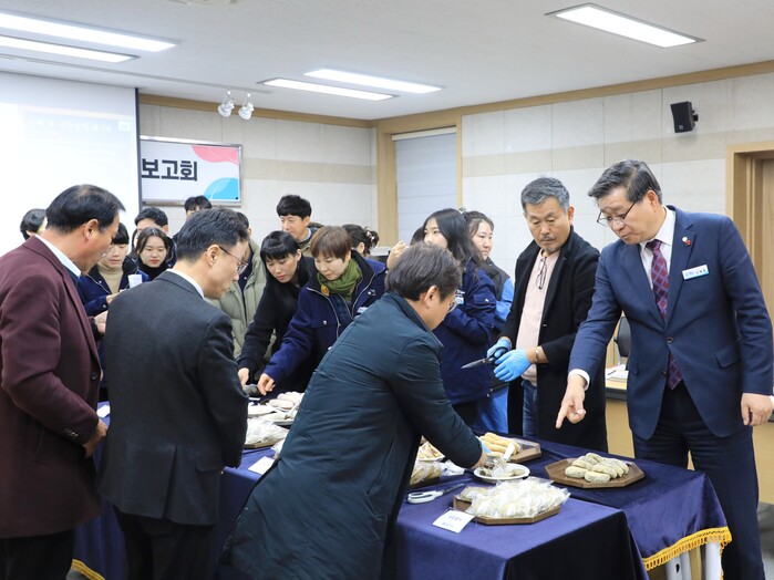 보고회에서는 진병영 군수를 포함한 20대~40대 직원들과 지난 공모전에 군민평가단으로 참여한 심사위원들 등 20여 명이 참석하여 시식 후 의견을 주고받았다.