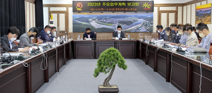 이번 보고회에서는 △2022년도 주요업무 추진성과 및 문제점 분석 △2023년 주요업무 추진계획 △신규사업 및 새로운 시책 등 합천군 미래 발전을 위한 세부실행계획 등을 논의하고, 인구소멸위기 극복과 미래성장동력 창출을 위한 과제 발굴 등에 대하여 토의를 실시했다.