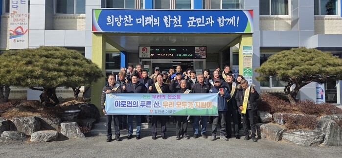 회의를 마친 회원들은 최근 건조한 날씨로 산불 발생 위험이 높아진 상황을 고려해 면사무소 앞으로 자리를 옮겨 산불 예방 홍보 활동을 전개했다. 회원들은 ‘산은 우리의 산소통’, ‘야로면의 푸른 산, 우리 모두가 지킴이’라는 문구가 담긴 현수막을 들고 지역 주민들에게 산불에 대한 경각심을 알렸다.