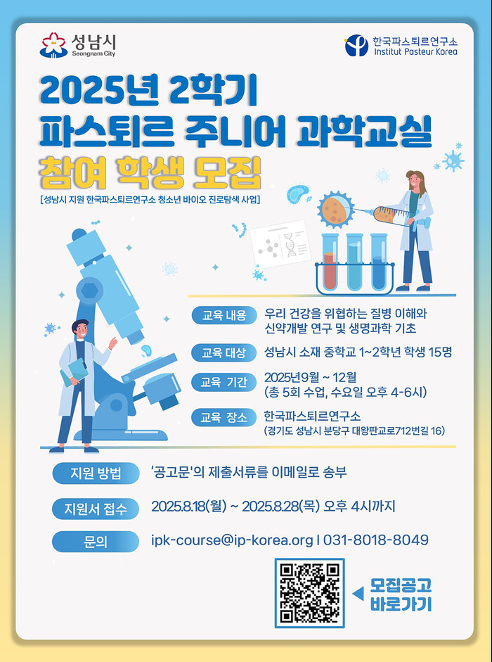 | ▲ 미래산업과-2025년 2학기 파스퇴르 주니어 과학교실 모집 포스터 |