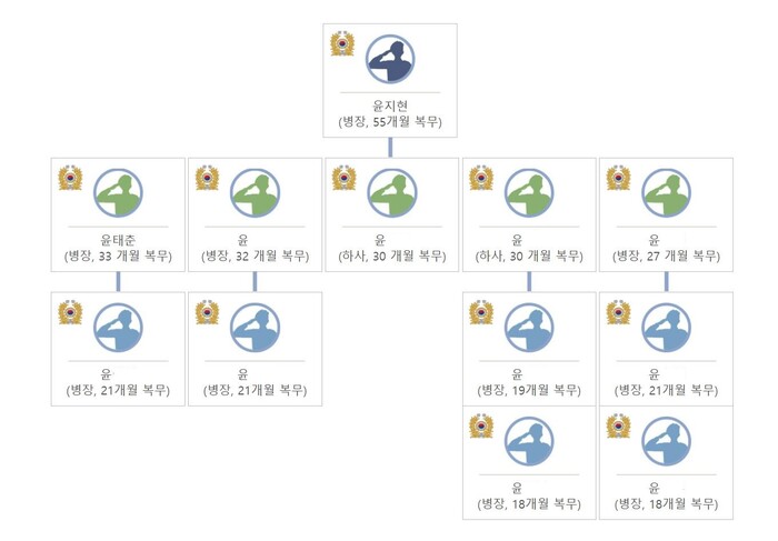 이후 2대인 윤 씨를 포함해 다섯 형제 모두, 아들과 조카 6명까지 육군으로 병역을 성실히 이행했다. 3대까지 12명 중 하사 두 명을 제외하고 10명이 육군 병장으로 만기 제대하며 병역이행의 정석을 보여줬다.