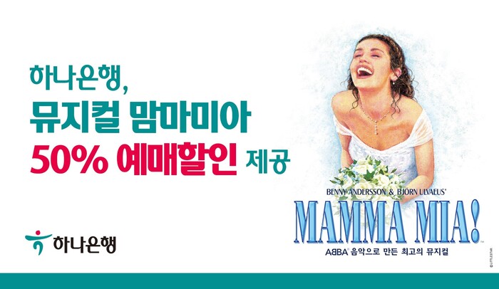 [시민일보 = 여영준 기자] 하나은행은 모바일 앱인 '하나원큐'를 통해 오는 26일 충무아트센터에서 진행되는 뮤지컬 '맘마미아' 예매시 티켓 가격의 50%를 할인해주는 '하나원큐 컬쳐데이'이벤트를 진행한다고 11일 밝혔다.