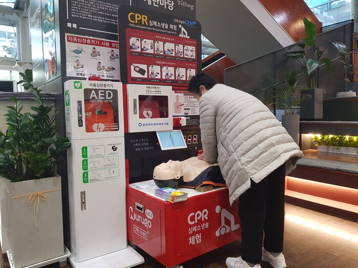 셀프 형태의 무인으로 운영되는 이동식 심폐소생술 체험대는 실시간 음성 피드백을 지원해 참여자 스스로 주변의 도움 없이 심폐소생술 방법을 익히고 연습할 수 있다.
