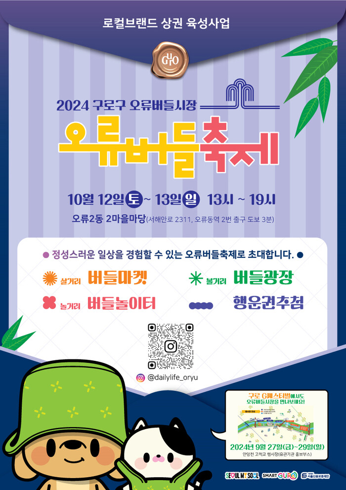 축제에 대한 자세한 사항은 오류버들시장 인스타그램 및 구청 지역경제과로 문의하면 된다.