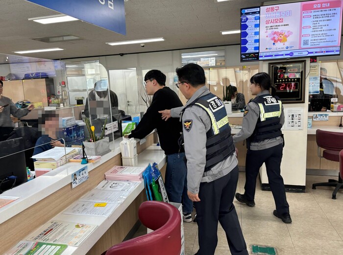 | ▲ 성동구 금호1가동에서 지난달 27일 민원실 비상상황 대비 경찰합동 모의훈련을 실시했다. (사진=성동구청 제공) |
